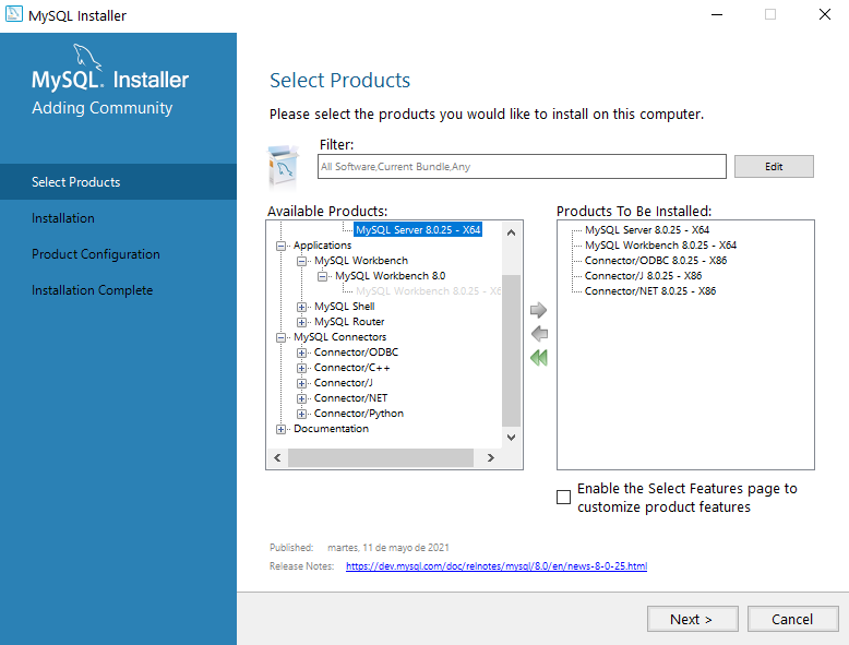 En la pestaña anterior de clic en la opción Add, esto abrirá la ventana de instalación de MySql