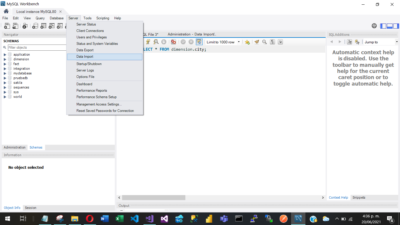 En el menú superior dirijase a Server -> Data Import