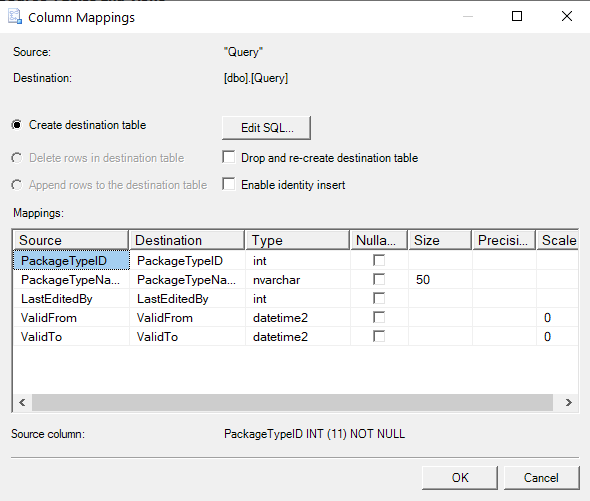 A continuación de clic en "Edit Mappings" verifique los tipos de datos destino