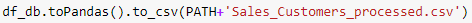 Posteriormente ejecute df_bd.toPandas().to_csv() indicando la ruta destino