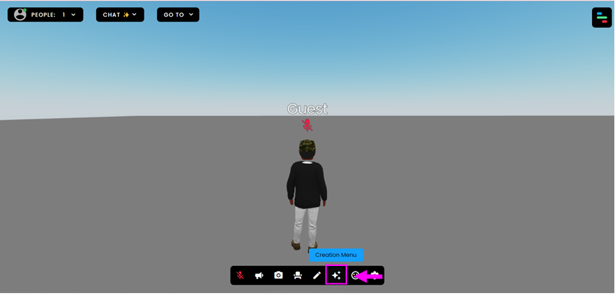 - En la barra de herramientas inferior daremos click al botón de "Creation Menu"