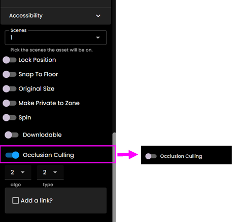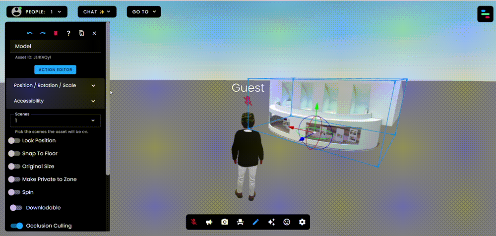 - Ahora desactivaremos las colisiones de nuestro modelo. Esto evitará que nuestro modelo desaparezca o se altere al momento de ser tocado por nuestro avatar. Para hacer esto desactivaremos la opción con el nombre "Occlussion Culling"