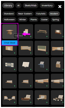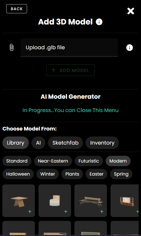 - Listo, al terminar de cargar el modelo veremos que sale en la parte inferior de la librería desde donde ahora podremos agregar la cantidad que queramos de este modelo solo dando click en el +.