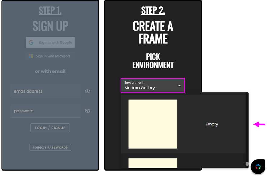 - Accederemos al siguiente link: https://learn.framevr.io/#sign-up